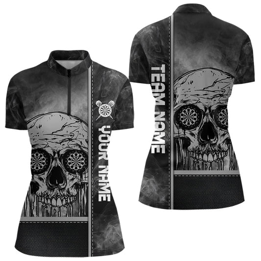Rauchender Schädel mit tropfendem Dartboard in den Augen, Dartshirts für Damen, personalisierte Trikots NYN0067
