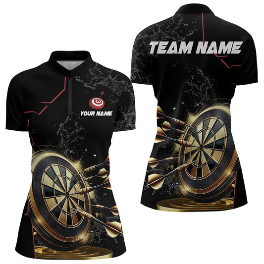 Schwarze und Goldene personalisierte Dartshirts für Damen, leuchtende Dart-Teamtrikots TDM3311