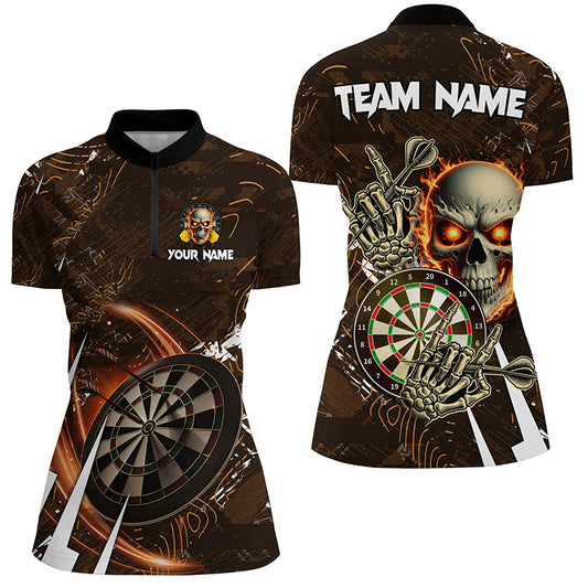 Personalisierte 3D-Schädel Darts Polo & Zip-Shirts – Coole Damen Dart League Teamtrikots TDM2391