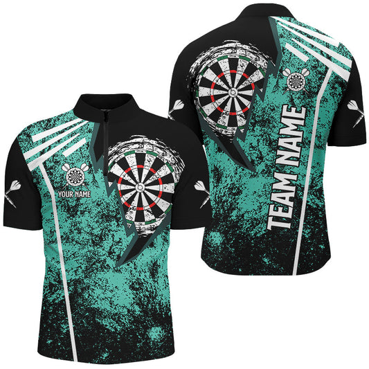 Grunge Herren Darts Polo & Viertelreißverschluss Shirts Maßgeschneiderte Retro Darts Teamtrikots | Türkis TDM2566
