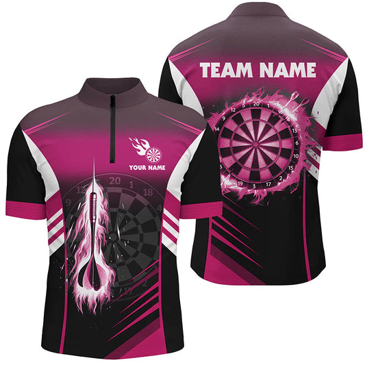 Personalisierte Darts Feuerpfeil Herren Dart Polo Shirts Flammen Dartshirt Darts Trikot | Pink TDM2592