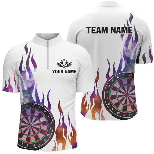 Personalisierte Darts Turniertrikot Für Herren, Dartboard Feuer Flamme Darts Teamshirts | Weiß TDM2334