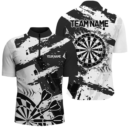 Grunge Schwarz Weiß Darts Polo & Viertelreißverschluss Maßgeschneiderte Herren Dartshirts Darts Teamtrikots TDM2454