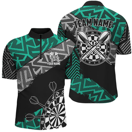 Personalisierter Türkis Tribal Darts Polo & Viertelreißverschluss Maßgeschneiderte Herren Dartshirts Darttrikots TDM2783