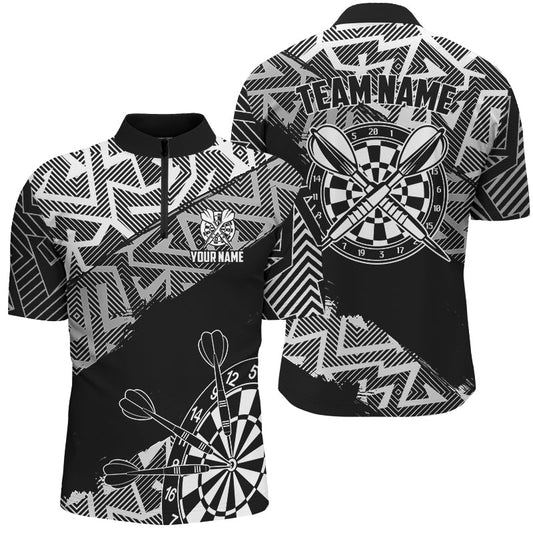 Maßgeschneiderte Dartshirts Für Herren Personalisierte Schwarz-Weiß Zickzack-Muster Darttrikots TDM2793