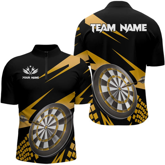 Gelb Schwarz Maßgeschneiderte Herren Dartshirts, 3D Darts Board Darttrikots Polo & 1/4 Reißverschluss TDM3140