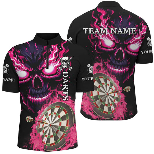 Pinkes Darts Board Flammen Schädel Herren Dartshirts Maßgeschneiderte Team Liga Darttrikots Uniform TDM2954