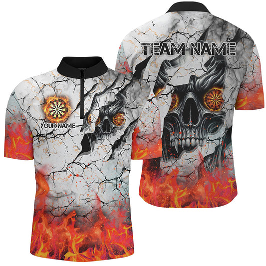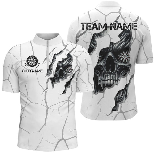 Personalisierter Schädel Weiß Grunge Darts Polo und Viertelreißverschluss Shirts für Herren, Dart Teamtrikots TDM2922