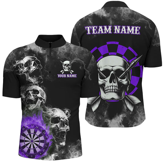 Lila Darts Rauch Schädel Herren Dartshirt Maßgeschneidertes Dartboard Feuer Flamme Dart Teamtrikot TDM3135