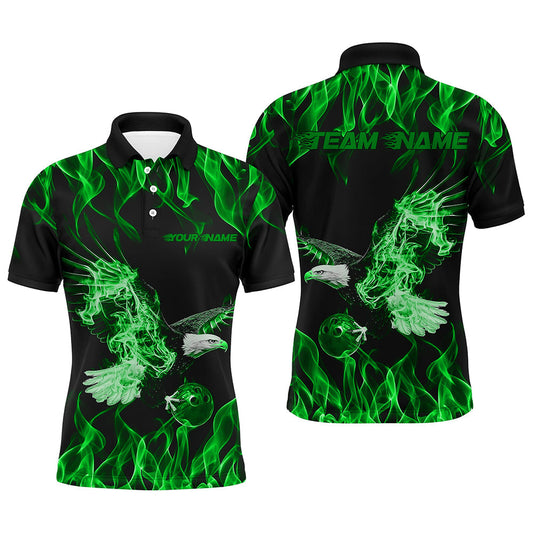 Grünflammen-Adler maßgeschneiderte Bowling-Teamshirts für Herren, Feuer-Bowlingliga-Shirt Bowler-Outfit IPHW7947