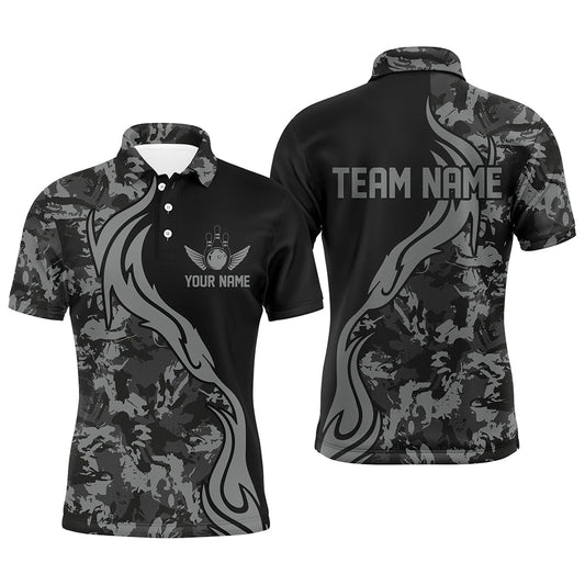 Personalisierte graue Camo-Bowlinghemden für Herren, individuelle Bowlingteam-Trikots, Bowler-Outfits IPHW5520