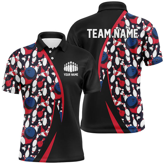 Rot-weiß-blaues Bowlingkugel-und-Pins-Muster, individuelle Bowlingteam-Trikots für Herren IPHW6732