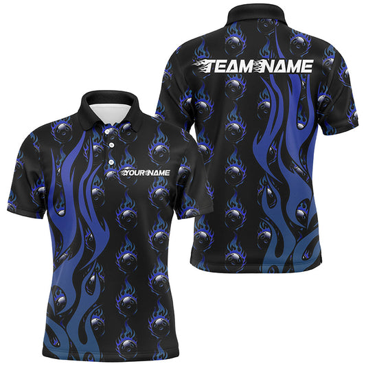 Individuelle Flammen-Bowling-Polohemden für Herren, Bowlingteam-Uniformen mit Namen | Blau IPHW6974