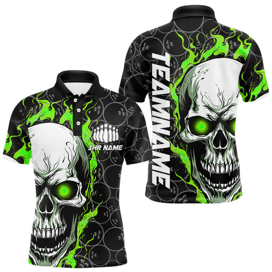 Individuell gestaltete Flaming Skull Team-Bowling-Hemden für Herren, Halloween-Bowling-Trikots | Grün IPHW5149
