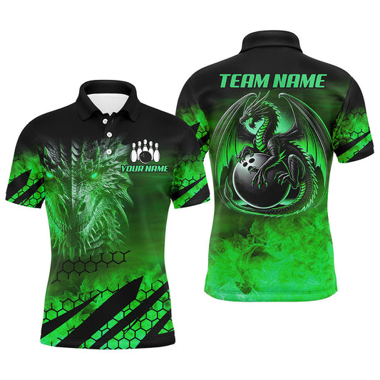 Schwarz-Grüne Maßgeschneiderte Drachenflammen-Bowlinghemden für Herren – Drachenfeuer-Bowling-Team-Shirts NQS8385