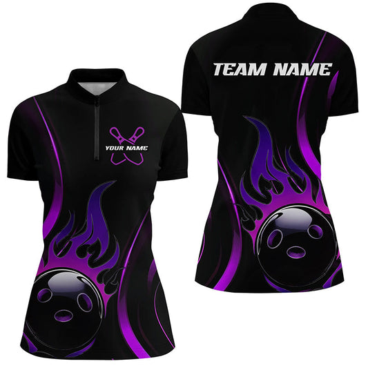 Individuelle lila Flammen-Bowling-Polohemden für Damen, Team-Bowlingliga-Hemden IPHW6988