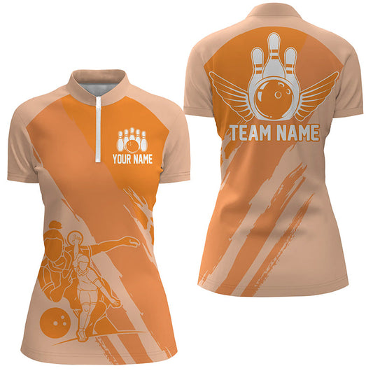 Individuelle Bowlinghemden für Damen, „Bowling Queen“-Team-Trikots, Bowling-Girls-Hemd | Orange IPHW4965