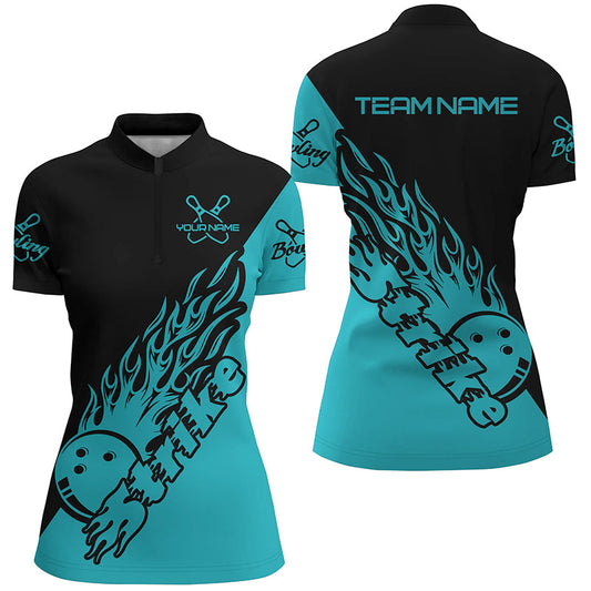 Individuelle Bowlinghemden für Damen, blaue Flammen-Bowlingteam-Trikots, Bowlingliga-Outfits, Bowler-Geschenke IPHW5493