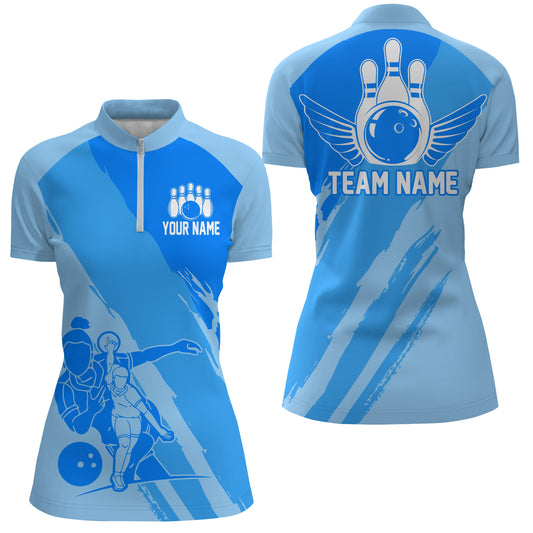 Individuelle Bowlinghemden für Damen, Bowlingteam-Hemden, Bowling Strike | Kugel Blau IPHW5173