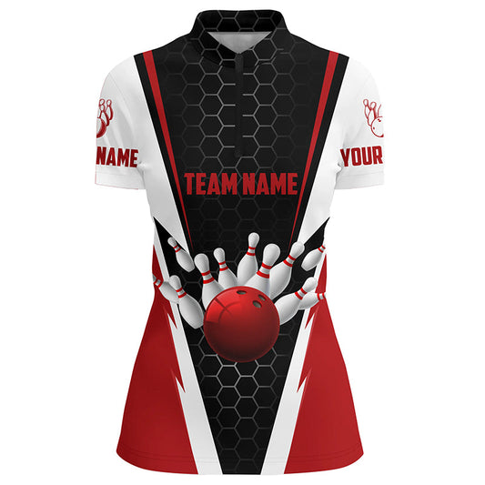 Individuell gestaltete Bowling-Hemden für Damen, Bowling-Kugel und -Pins Damen-Bowling-Jerseys | Rot IPHW4175