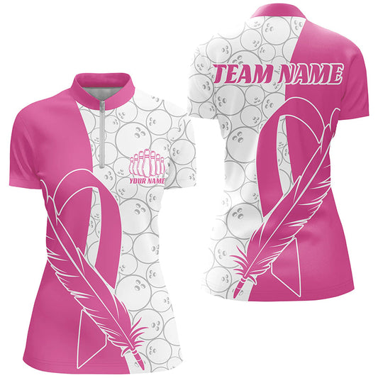 Feder-Schleifen-Brustkrebs-Bewusstseins-Bowlinghemden für Damen, pinke Bowlingtrikots IPHW6673