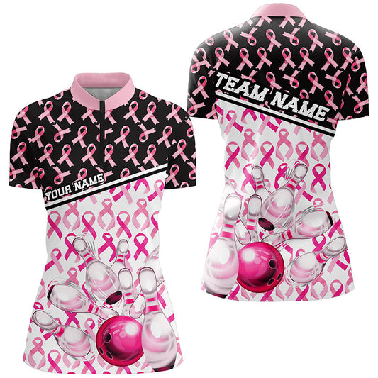 Schwarz-pinke Brustkrebs-Bewusstseins-Schleifen, individuelle Bowlinghemden für Damen IPHW7007