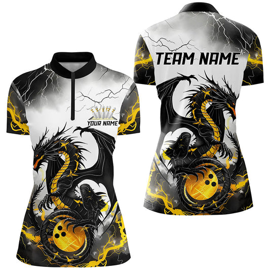 Schwarzgoldene „Donner Blitz“ individuelle Drachen-Bowlinghemden für Damen, Bowlingligahemden IPHW7061
