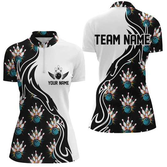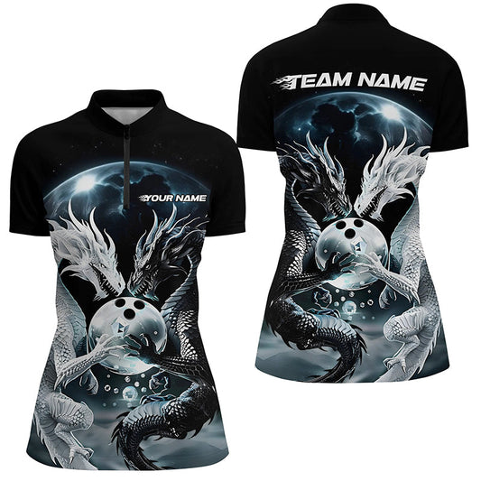 Schwarzweiße individuelle Drachen-Bowlinghemden für Damen, Drachen-Bowlingliga-Outfits IPHW7064