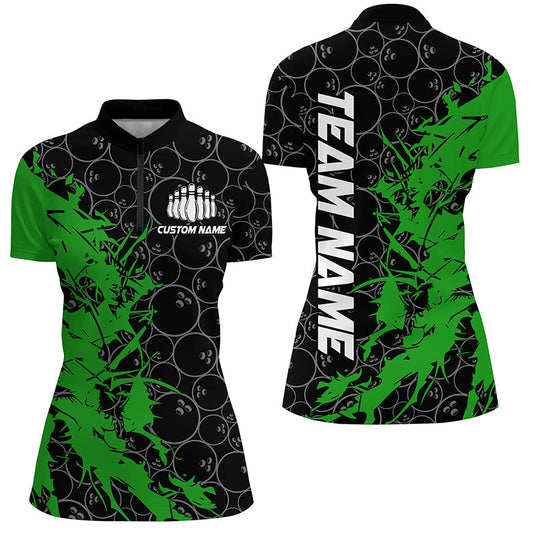 Schwarz-grüne individuelle Bowlinghemden für Damen, Bowlingtrikots, Bowlingteam-Hemden IPHW6983