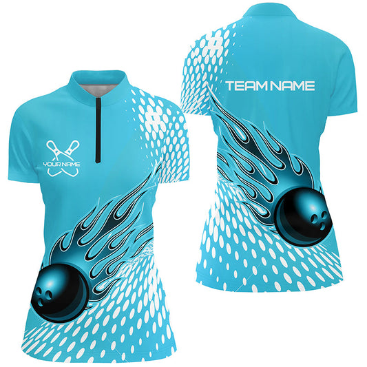 Personalisierte Bowling-Hemden für Damen, Bowling-Kugeln und -Pins Bowling-Team-Hemden | Blau IPHW4506