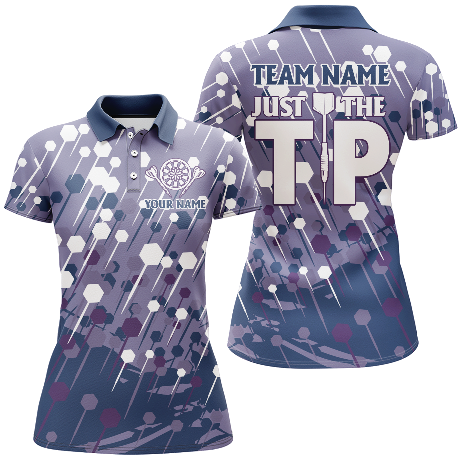 Marineblau-Lila Darts Muster Poloshirt – Cooles Darts Shirt für Damen Dart Trikot für Teams LDT0393