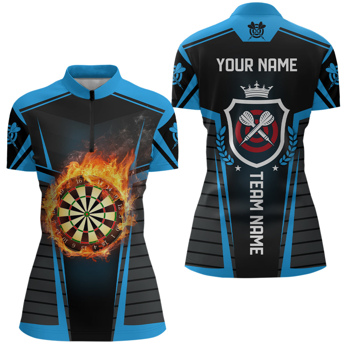 Schwarz Blau Flame Damen Dart Quarter-Zip Shirt – Individuelles Trikot LDT0896