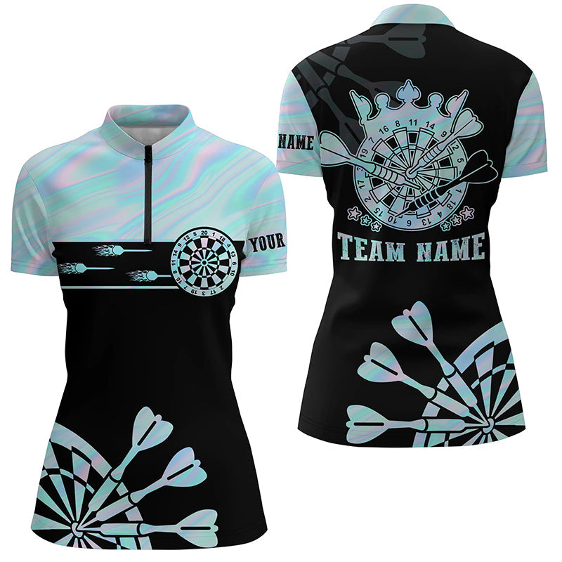 Holographische Tie Dye Darts Quarter-Zip Shirts – Individuelles Dart Shirt für Damen Dart Trikots LDT1366