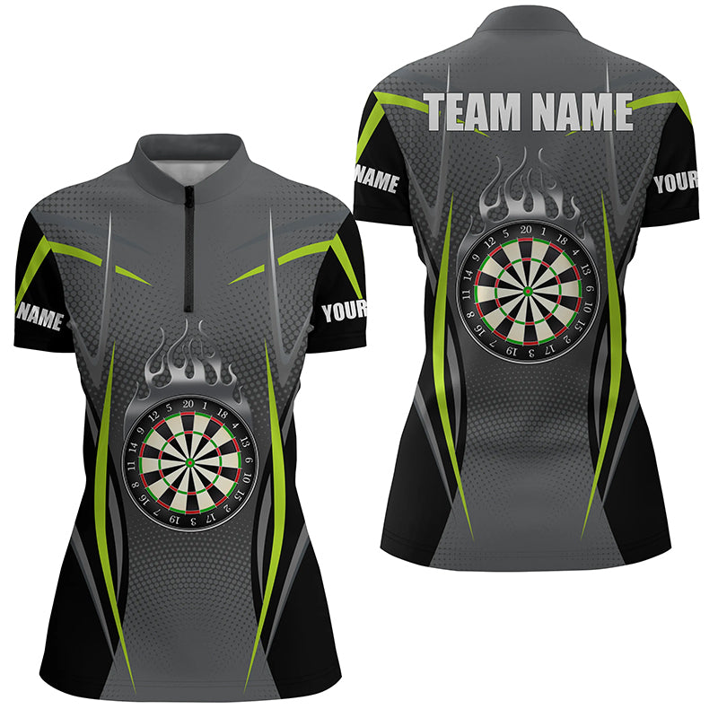 Grün Graues Sportstil Damen Dart Quarter-Zip Shirt – Individuelles Dart Trikot LDT1383