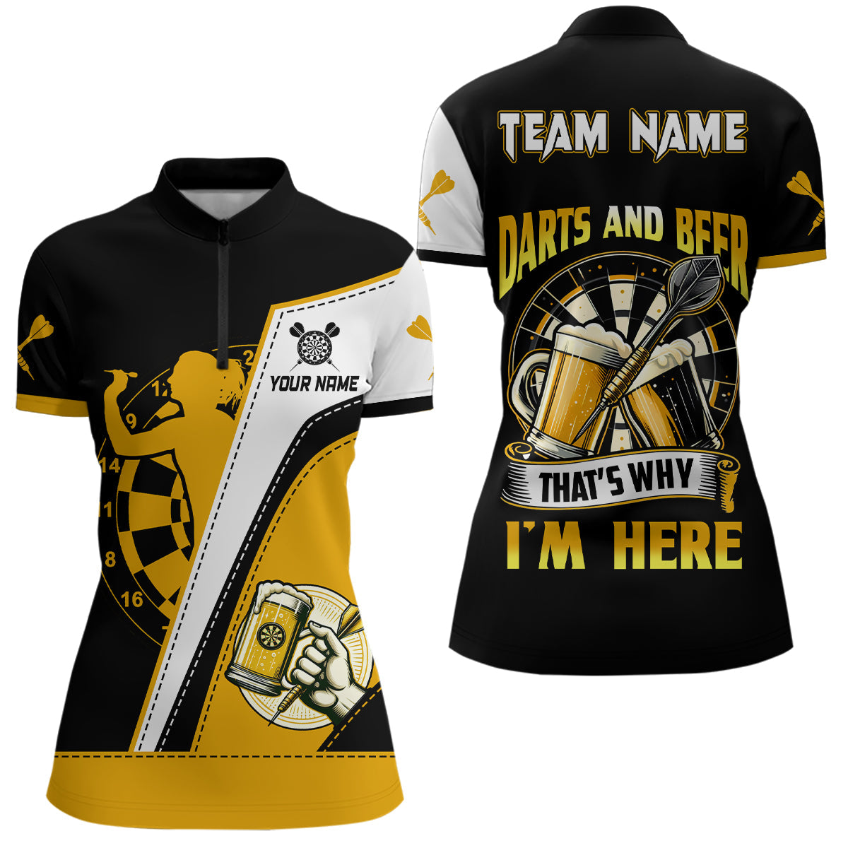 Darts und Bier, deshalb bin ich hier Darts Quarter-Zip Shirt – Individuelle Dart Trikots für Damen LDT1457