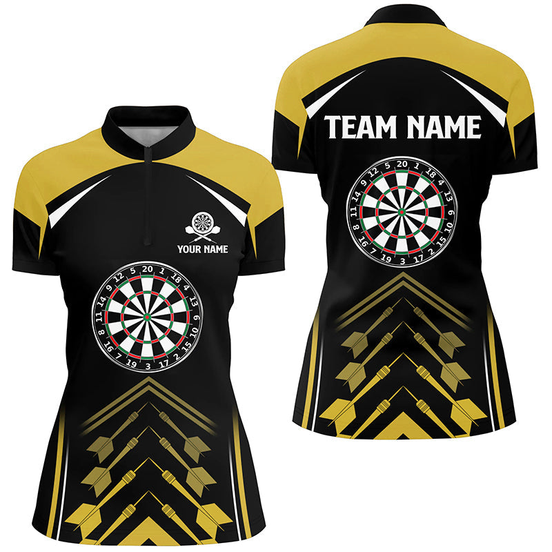Individuelles Gelb Schwarz Darts Quarter-Zip Shirt – Individuelles Dart Shirt für Damen, Dart Trikot LDT1466