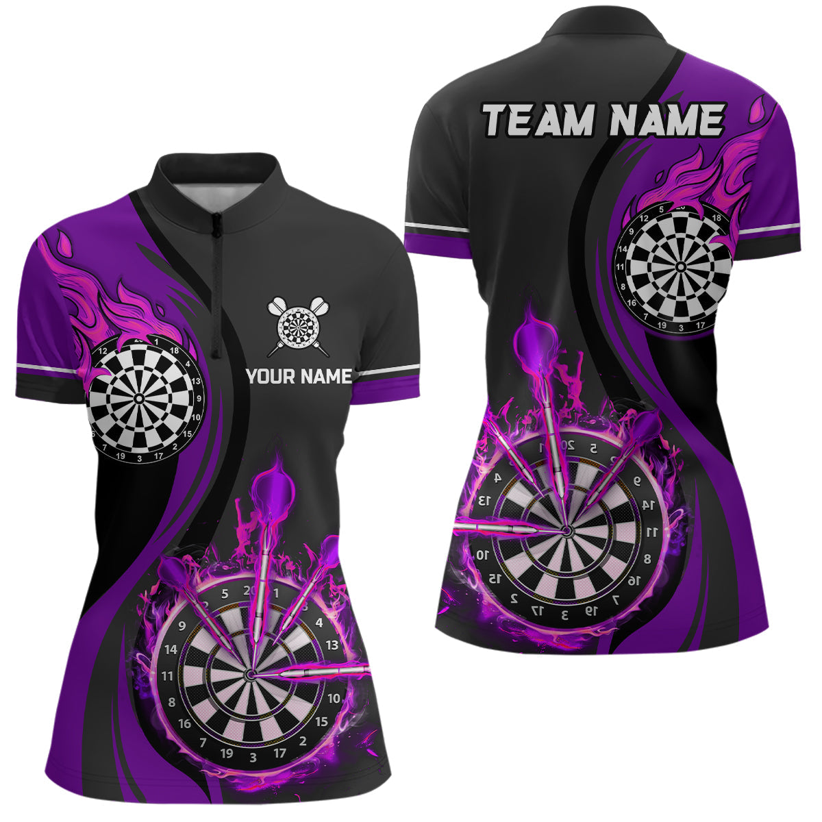 Lila Feuer Flame Damen Dart Quarter-Zip Shirt – Individuelles Dart Trikot LDT1477