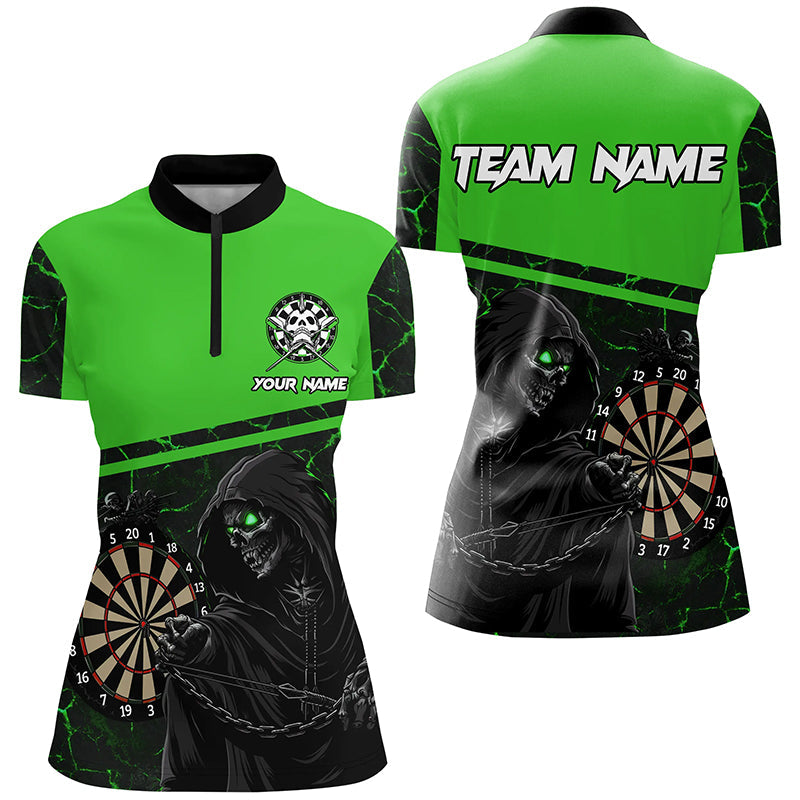 Individuelles Totenkopf grün Dart Quarter Zip Shirt für Damen, Cool Dart Trikot TDM1984