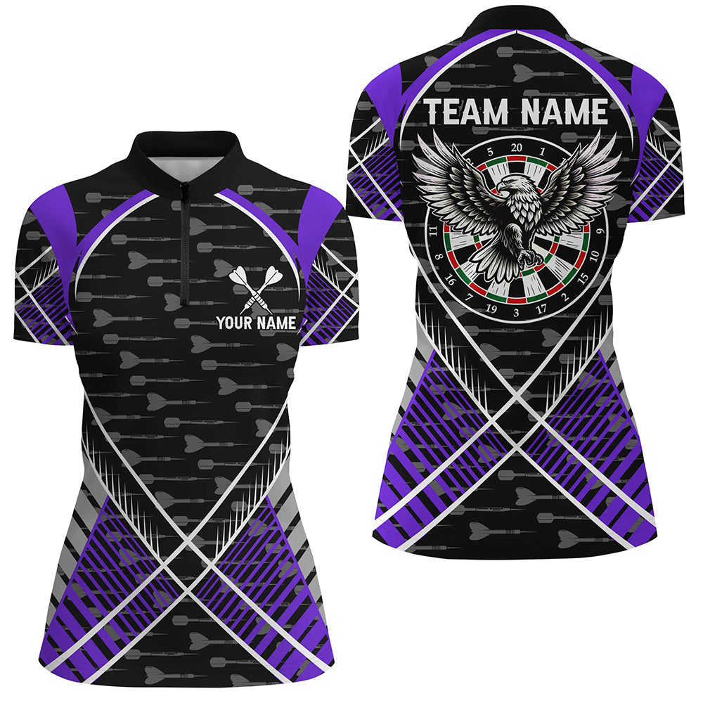 Individuelles Adler Pfeilmuster Damen Quarter Zip Shirt, Lila Dart Team Trikot TDM2205