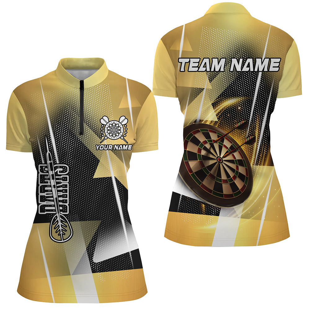 Individuelles Dart Damen Quarter Zip Shirt, Gelbes Dart Team Trikot TDM2267
