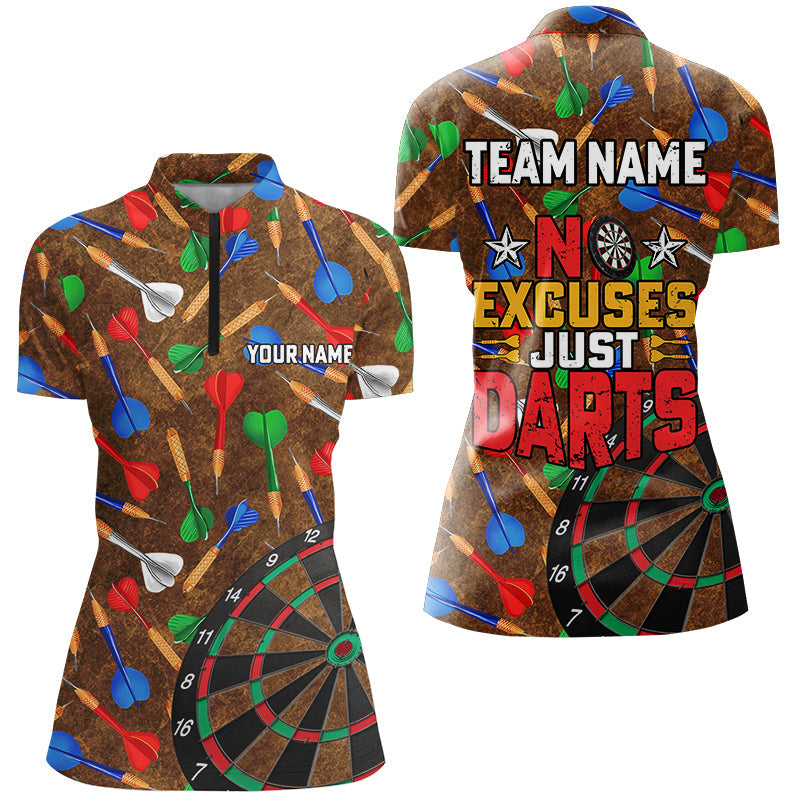 Individuelles Buntes Pfeil Dart Damen Quarter Zip Shirt, Lustiger Dart Spruch Dart Trikot Keine Ausreden TDM2733