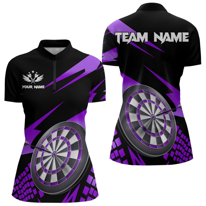 Individuelles Lila-Schwarz Damen Quarter Zip Shirt, Dartbrett Dart Trikot Team Outfit TDM3141