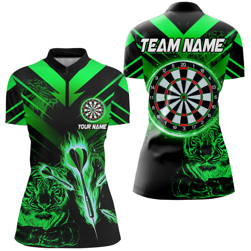 Individuelles Grüner Dartpfeil Feuer-Tiger Damen Quarter Zip Shirt, Dartliga Team Trikot TDM3145