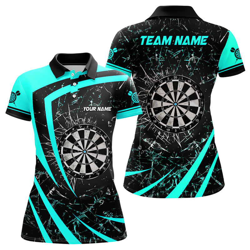 Lustiges türkisfarbenes „Glassprung“-Darttrikot, individuelles Damen-Polo & 1/4-Zip TDM3876