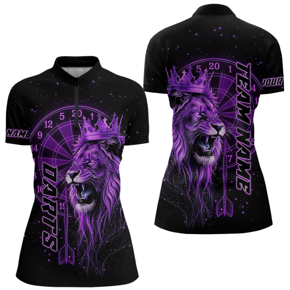 Schwarzes Und Lila Lustiges Löwenkronen-Dartshirt Für Damen – Liga-Teamtrikot Polo & 1/4 Zip TDM5002